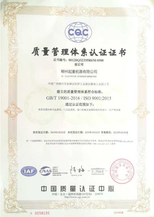 質(zhì)量管理體系認(rèn)證證書